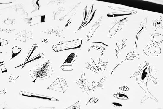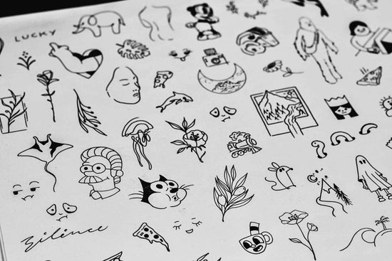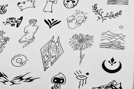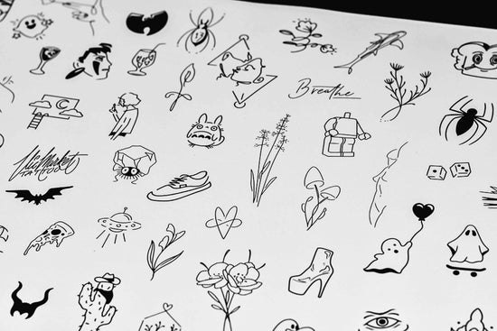 Our collection of fineline tattoo flash is a stunning representation of the intricate artistry and skill that goes into this style of tattooing. Each design in the collection showcases delicate lines and precise details, resulting in a beautiful and timeless piece of body art. From minimalist designs to more elaborate patterns, our fineline tattoo flash collection offers something for everyone who appreciates the beauty of small minimal tattoos. Whether you're looking for inspiration for your next tattoo or simply admire the craftsmanship, our fineline tattoo flash collection is sure to impress.